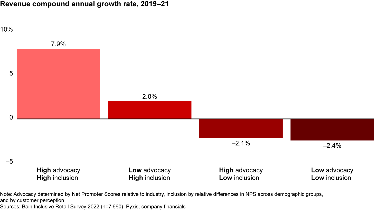 More inclusive retailers tend to achieve higher revenue growth, particularly if they excel at turning customers into cheerleaders